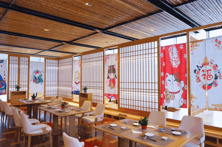 屏风式梭拉门、榻榻米,满满的日式风情,和乐吉町日式料理,将食材的本真至味心情释放,一丝不苟的精致带来优质的感官享受。