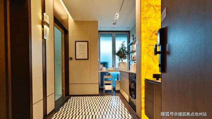 其内,如引入上下水,能实现洗衣机、烘干机的放置需求,节省室内空间、增加收纳功能。