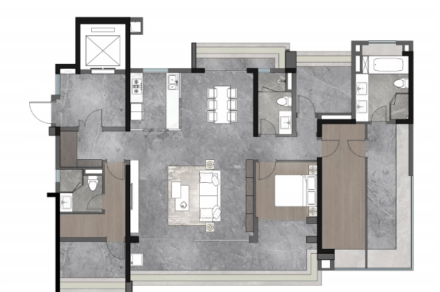 建面约170㎡航母大平层:南北通透,配备中西双厨、豪华双套卧,主卧配有尊崇衣帽间及酒店式双台盆。