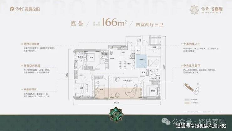 ▎产 品 建面为139、166、175㎡四房精装大宅