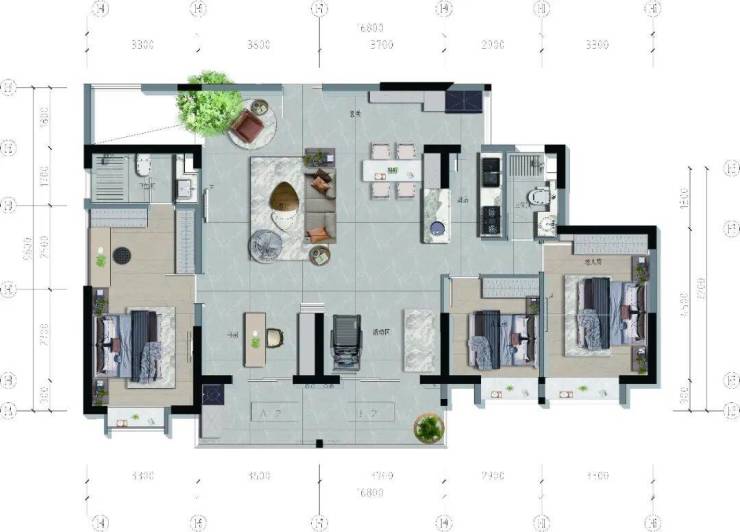 【A-2+B-2 大平层 建面约142㎡】方案一 四室两厅两卫