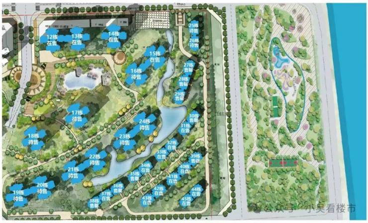 约16万㎡的【千帆万境】滨海艺术园林,同样已经部分开放,漫步园中,绿意覆盖,每一眼都在诠释“抬头见月,低头见绿”的美学意趣。