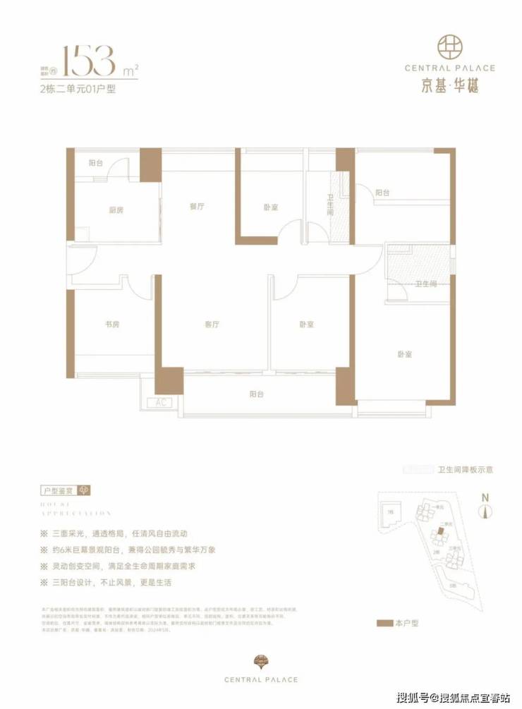 项目户型包括95㎡的3房2厅2卫、99㎡的3房2厅2卫、111㎡的3房2厅2卫、120㎡的3房2厅2卫、143㎡的4房2厅2卫及153㎡的5房2厅2卫,143㎡四房为横厅设计。