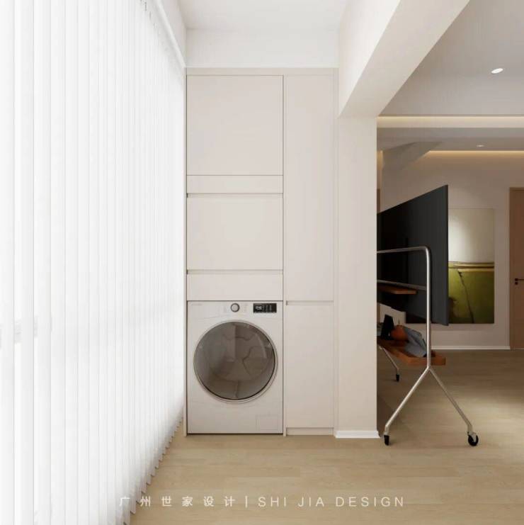 打破空间界限,将阳台纳入客厅植入洗衣功能,一体开放式布局让空间通透性与使用效率呈现最大化。