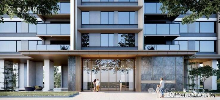 离家还有80米的时候,先映入眼帘的,是玻璃幕墙辅以暖木色系线条、香槟金铝板配搭而来的建筑群;