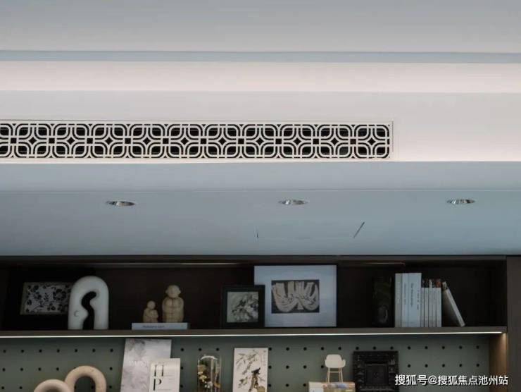 项目的下沉庭院,取意于古汉阳十景,如诗如画,庭院池底是凤凰图腾,楚文化展示长廊、揽月雕塑,延续云梦古泽、高山流水的意境,打造一番山水小天地;样板间的中央空调出风口与室内门面,均采用定制的蛟龙纹。
