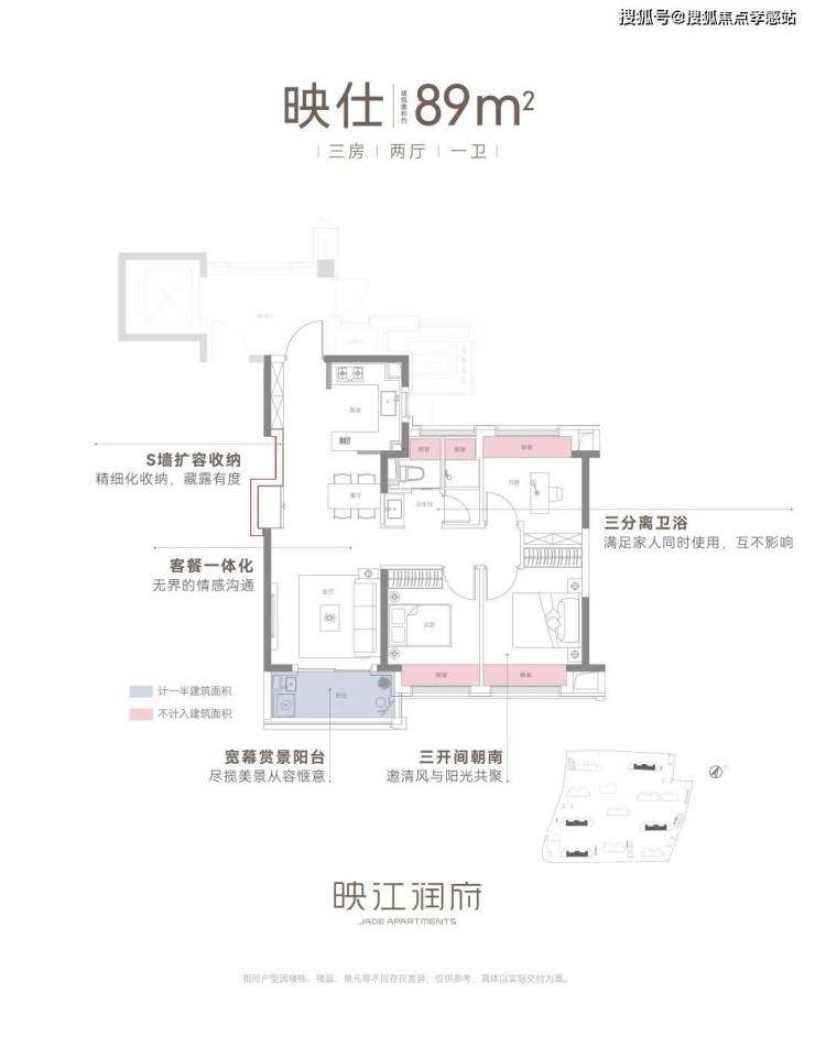 其次是户型设计。在户型产品同质化严重的当下,映江润府花更多心思在户型创新设计,给到置业者更美好的家的体验。建筑面积约89㎡王炸小豪宅户型,拥有四大高光细节和创新设计,在市面上同类产品中非常能打。