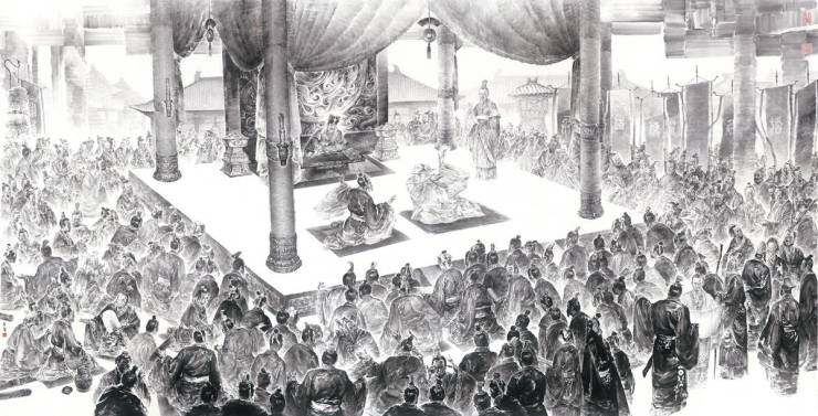 作为战国时期百家争鸣主阵地、最早的国家研究院和政府智库、最早的公立大学办学地,稷下学宫是当时全国的文化交流中心,也是2000多年来齐鲁大地乃至中华民族的重要文化地标。今年的山东省政府工作报告提出“研究建设稷下学宫模拟展示馆”,体现了政府对稷下学宫在中华文化传承中重要地位的充分认识。韦辛夷的《稷下学宫》立意高远,考据扎实,准备细致,用他深厚的艺术功底,创造了一幅法度谨严、构图考究、形象丰富、笔墨精湛的艺术精品,生动再现了当年稷下学宫的盛况,让人观后为之震撼和感动,文化自豪感与责任感油然而生。