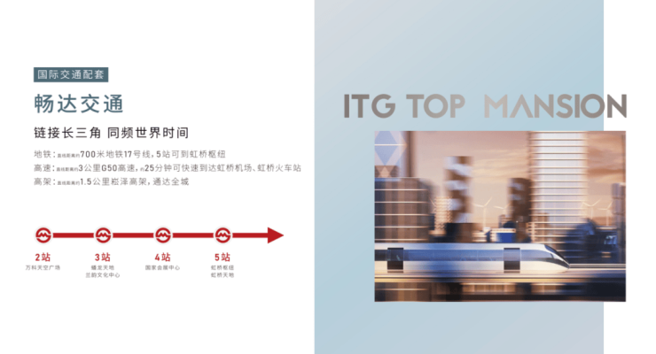 大虹桥:国际开放枢纽、国家战略重点发展区域,是面向全球,辐射长三角的经济巨擎。国贸虹桥璟上占位虹桥核心区域,17号线地铁5站即可到达大虹桥核心功能承载区,将成为精英人士置业优选。
