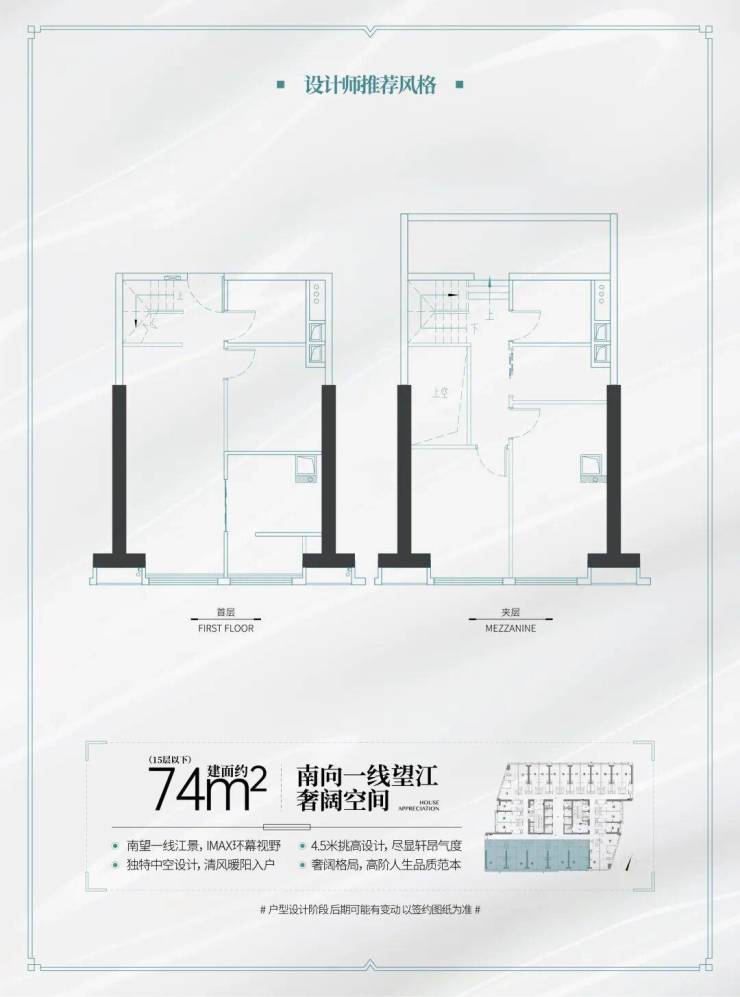 👉建面约74㎡南向一线望江LOFT(可明火)