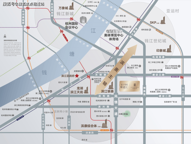 众安滨和印项目位于滨江与奥体交汇的核心板块——滨奥主轴之上,风情大道与建设二路交叉口,距离滨江核心区直线距离约1.9公里,距离奥体中心直线距离约2.5公里。项目的地理优势十分明显,处于滨江区和奥体核心区的黄金交汇点,周边配套设施齐全,地理位置得天独厚。
