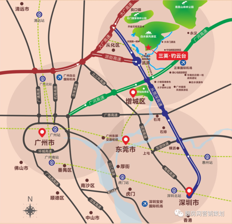 1、广州—京港澳高速—大广高速—派潭大道北—三英温泉度假酒店。