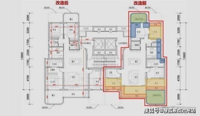 高层中间户是三开间朝南+四叶草的户型,客厅开间5米3,得房率107%,奇偶错层小露台,同时兼顾实用与隐私