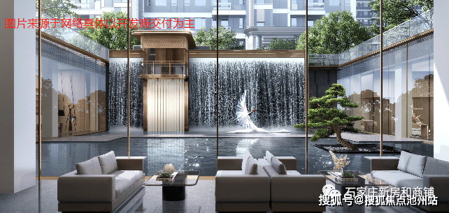c.石门首个100㎡ 飞瀑景观会客厅;(以太行山纹肌理金属锻造,匠造石家庄惟一下沉式光院;)