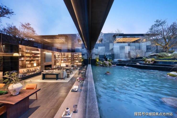 书吧巨大的落地窗正对着飞流直下的叠瀑,隐约的水声成为阅读时最自然的背景音;方才提到的悬空玻璃茶亭,此刻置身其中,宛如漂浮于莲池之上;私宴厅、KTV的格调不输顶级酒店,更考虑了功能的复合性;恒温泳池泛着宝石般的蓝光;专为女主人们设计的“女王空间”精致典雅。琴、棋、书、画、诗、酒、花、香、茶……这些东方雅集的核心元素,不再是遥不可及的符号,而是被巧妙地编织进十五大功能场景中,成为日常生活的注脚。