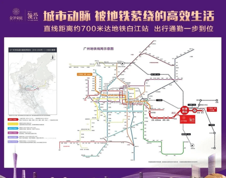 项目直线距离白江地铁站仅700米,步行8分钟可达,由白江站乘坐13号线,2站黄埔,8站天河,未来13号线二期开通可一线通达5大区,实现4大CBD上班无忧,16号开通后更享双地铁便利。