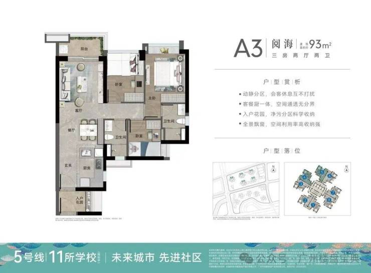 阅海组团紧邻公园,紧邻学校、酒店,也是万科黄埔新城最早开盘的户型,目前已经处于现楼状态,放款即可收楼,该组团只有93平三房一个户型。