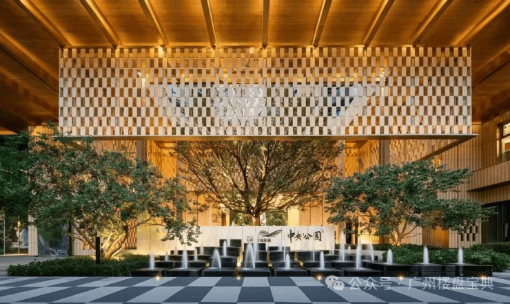 从进门那一刻起,门口高大的朴树、红果冬青以及涌动的喷泉,映入眼帘,仿佛排列整齐的私人管家,奏响一曲美妙的乐章,热烈欢迎主人回家。悬挂在上方的陶板吊挂装置,则像一盏巨大的传统灯笼,当灯光亮起,由内而外地向业主传递着不一样的归家温暖。
