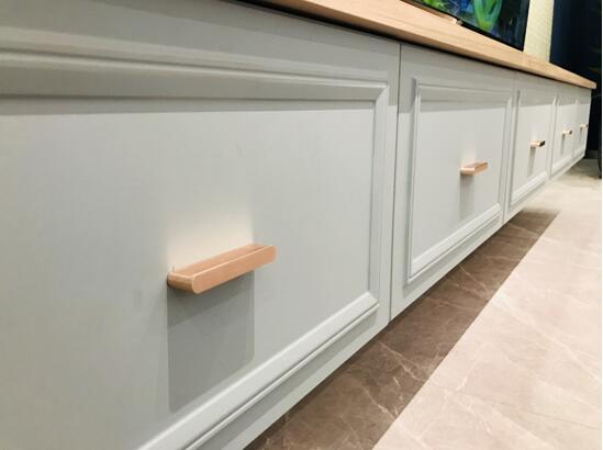▼柜身采用时尚湖光木,接近于原木色,木纹细腻,触感柔和,给家居空间独特的温度,视觉上带来温暖的感觉。