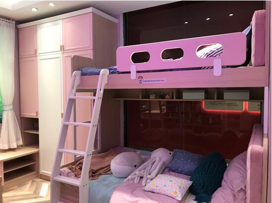 增加的创意玩具柜可放置孩子的毛绒娃娃,珍藏漫画、常用书籍,让宝贝自行决定物品位置。