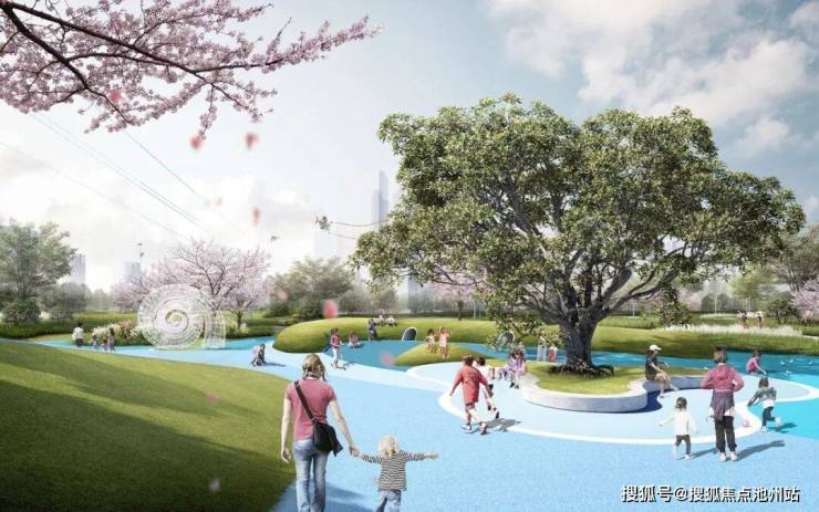 约6万方中央公园、约4万方体育公园,与文旅公园、口袋公园、绿链系统、线性绿道共筑公园森境。依托中央公园打造自然研学空间、户外健身空间、滨水会客厅、新锐打卡地,打造繁华与自然交织的诗意栖居大境。
