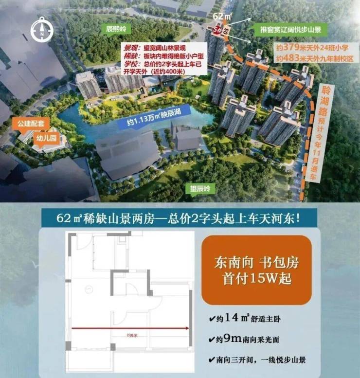▸在天河世界大观,可以俱享山/林/湖/公园,亲临映辰湖(约1.75万㎡)+板块内太阳湖+月亮湖(约5.3万㎡)+约243万㎡山湖林海环绕,相当于3.5个天河公园,8.6个珠江公园。