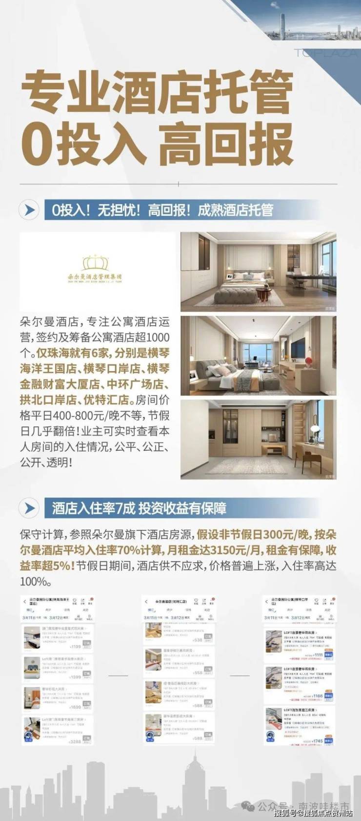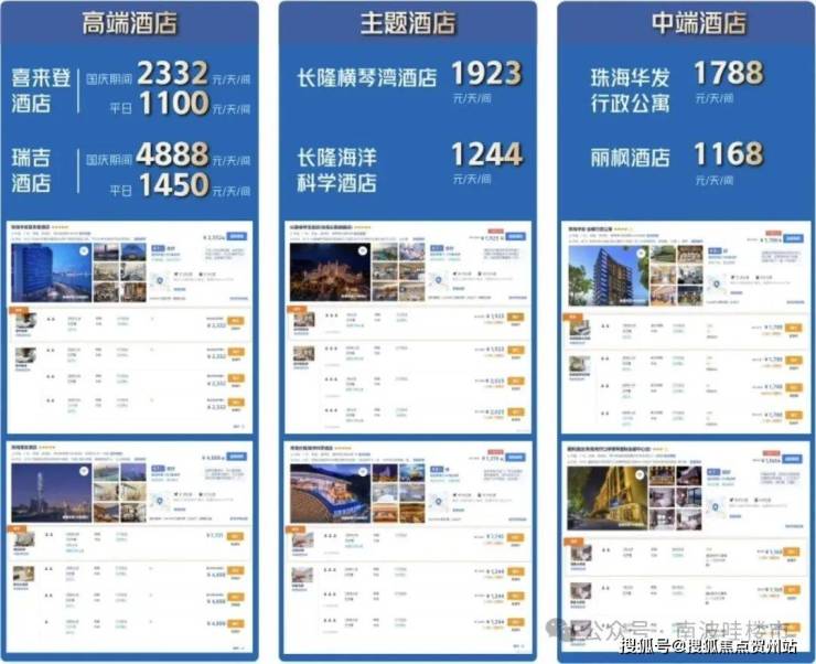珠澳CBD国际星级酒店集群,近80%年酒店入住率。长隆酒店5000套住房一房难求,租金高达800-1500元/天,喜来登、瑞吉酒店房价高达1500-2500元/天。节假日更是水涨船高,供不应求。