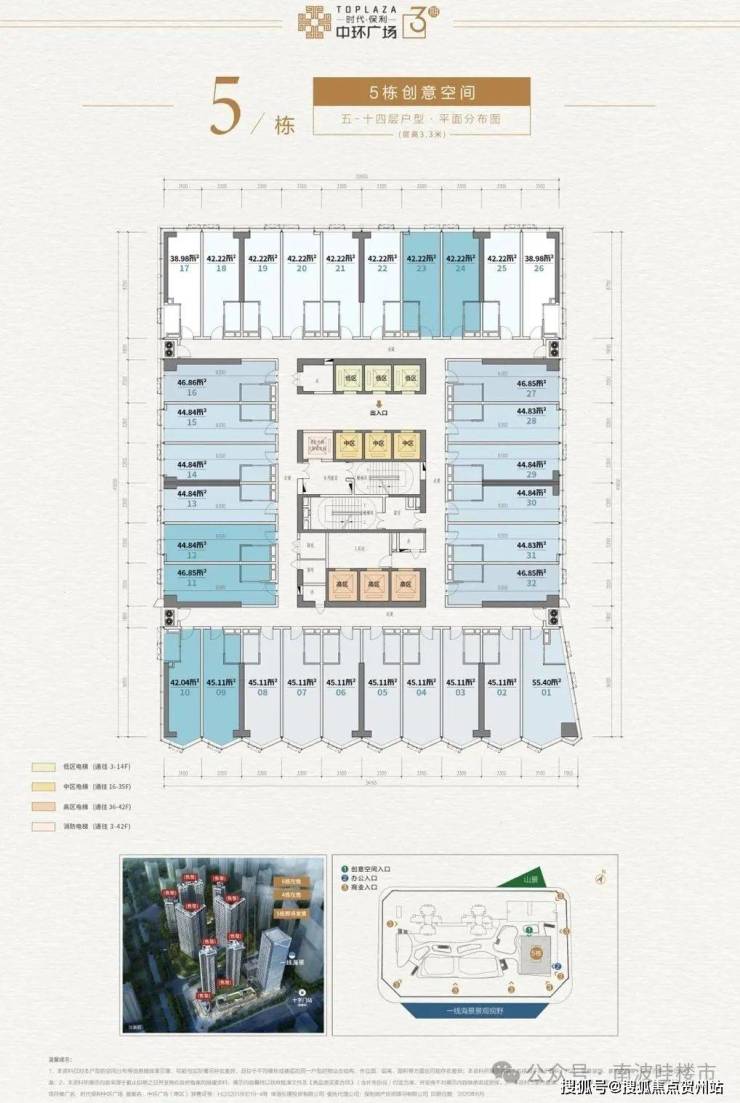 层高:3-14层3.3m、16-35层3.6m、36-42层3.7m