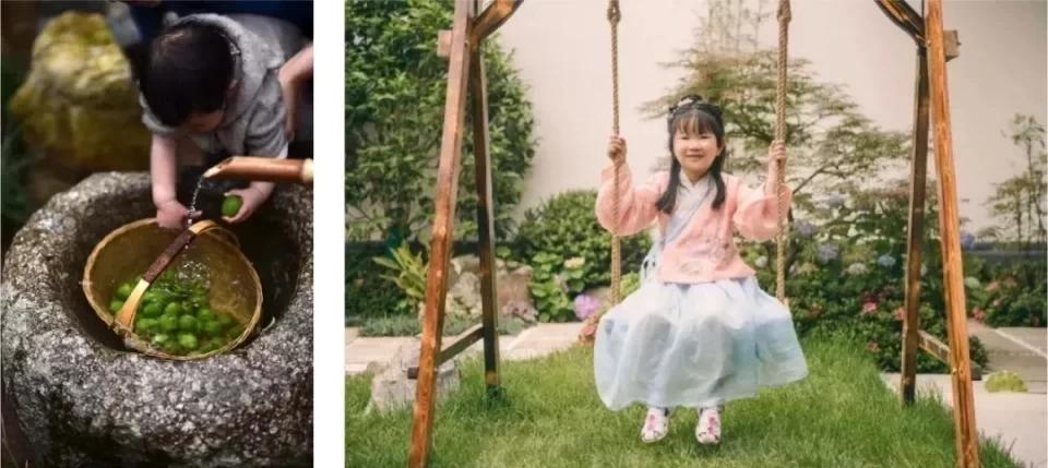 中式合院不止是一种建筑形态,更是一种生活方式。“厅前植桂,屋后栽竹,阶前梧桐,转角芭蕉。”在中式合院里,满目皆是四季美景,起笔便是鸟语花香。相聚之余,果蔬菜肴,对弈品茗;时逢佳节,举头赏月,花间小酌;家中宠物,草坪奔跑嬉戏;孩童们荡着秋千,在有天有地的环境中欢乐成长,亲近自然。