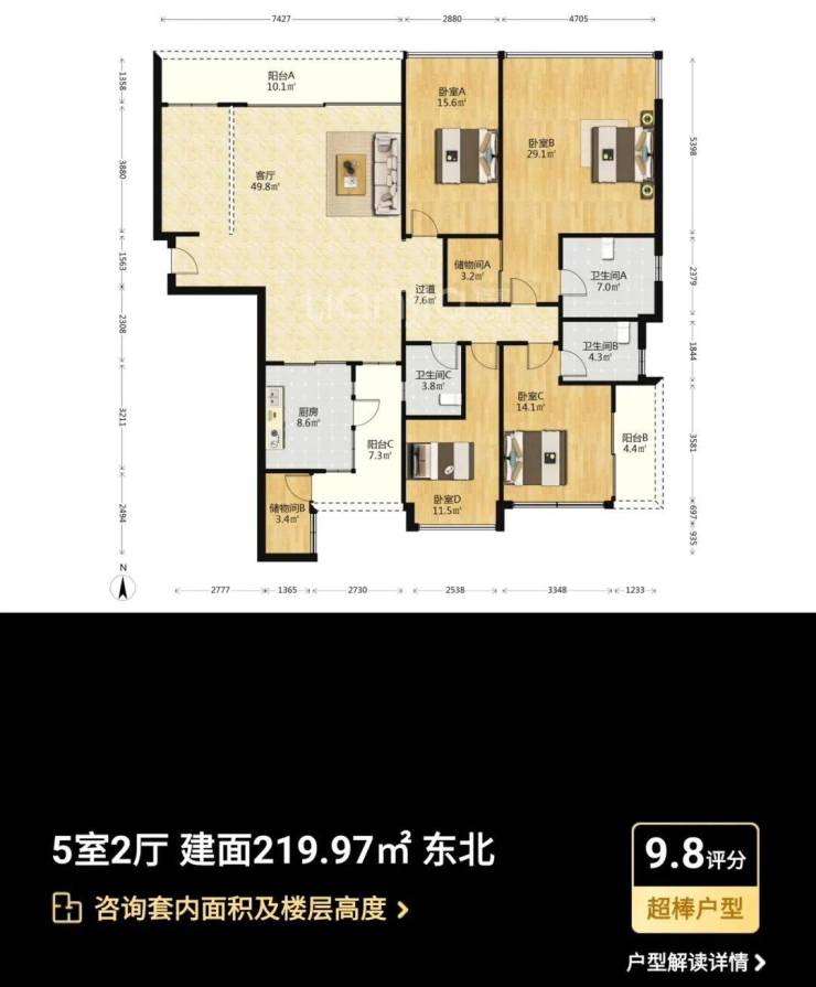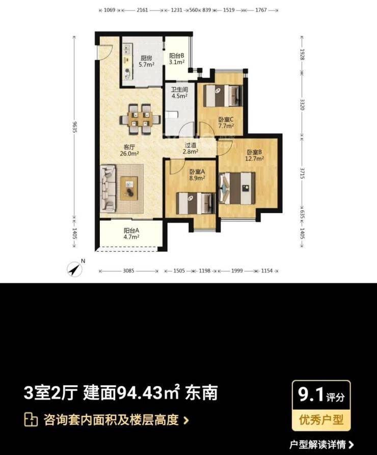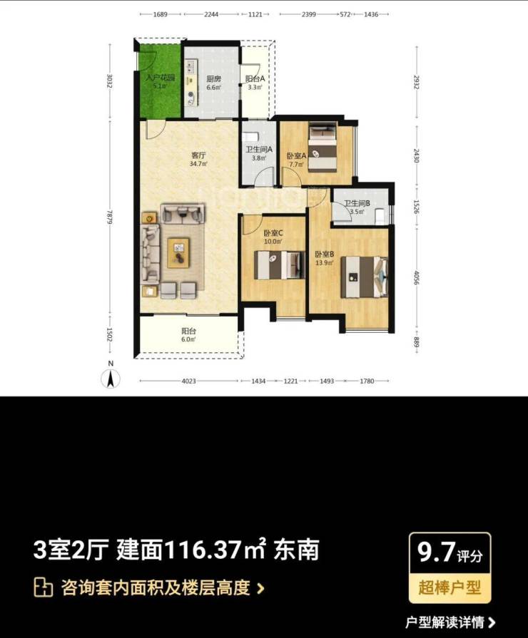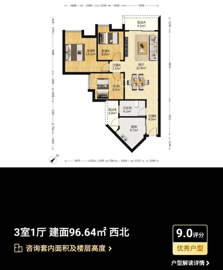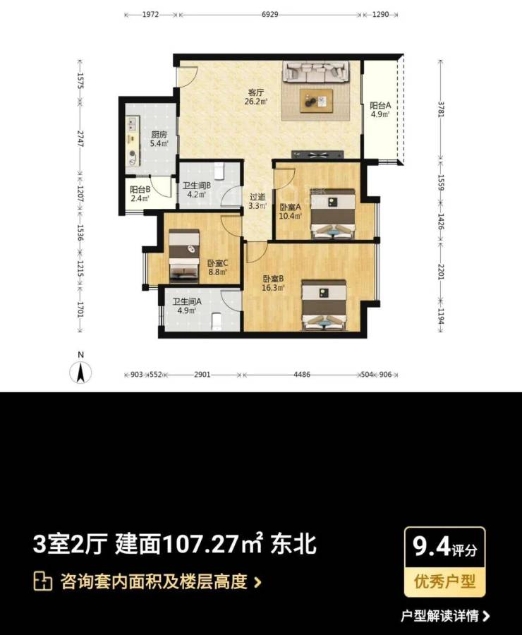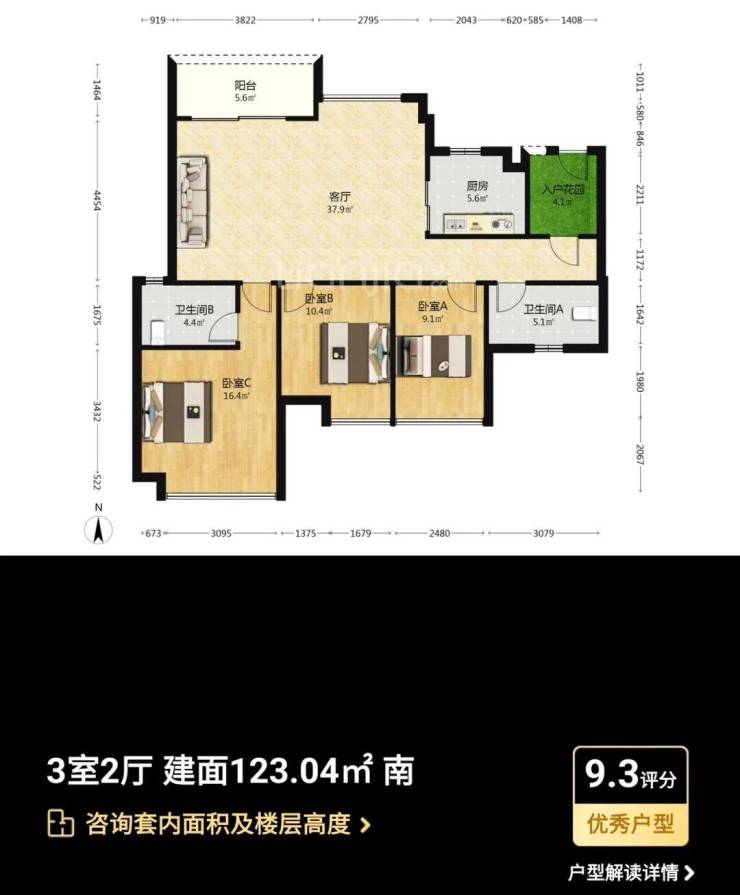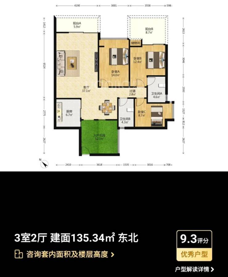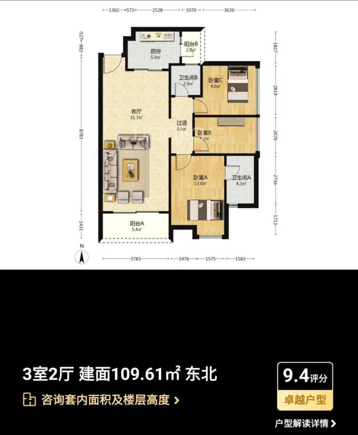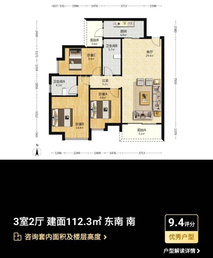 主力户型:主打95-133㎡三至四房,涵盖南北通透、全明采光的户型设计,如109㎡三房采用经典竖厅设计,133㎡四房配备6.8米景观阳台,实际使用率达90%。