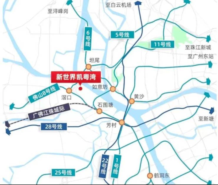 地铁:距离地铁5号线滘口站约500米,步行可达;附近还有6号线坦尾站、11号线石围塘站,未来白鹅潭站将实现1、11、22、28号线四线换乘。