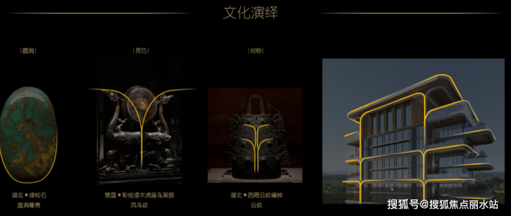 中建壹品汉韵公馆的住宅立面,正是选自楚建筑的线条制式、凤鸟纹、编钟云纹,手法简练飘逸,大有凤舞九天的艺术气质。