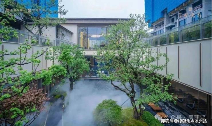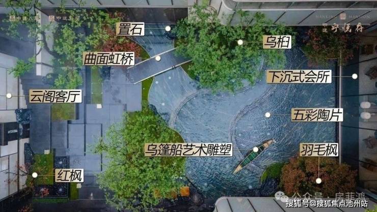 项目还以明代画家邹典的《金陵胜景图》为灵感打造一轴七境园林,下沉庭院中还特别匠造一座乌篷船艺术雕塑,池底铺设五彩陶片,再辅以蜿蜒曲折的空间构造,江南水乡的灵动跃然眼前。