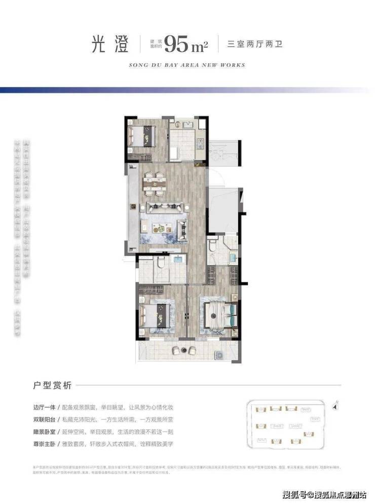 建筑面积约 95方边套户型,大边厅设计,打造一方餐、客、厨连通的“社交公区”,收藏全家人的三餐四季。无论是孩子的嬉笑打闹,还是父母的颐养天年,亦或是三两好友把酒言欢也不显局促。