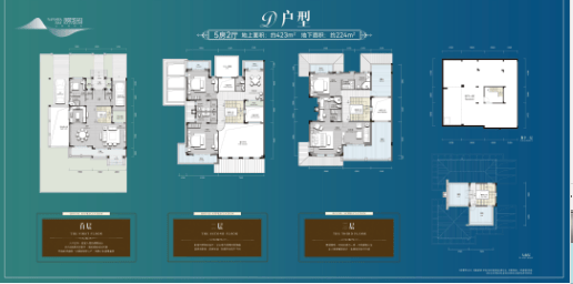 D户型:总建面647㎡(地上423㎡,地下224㎡),极致奢阔,解锁顶级豪宅生活。