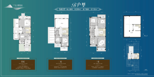 B户型:总建面418㎡(地上288㎡,地下130㎡),布局合理,兼具实用性与奢适感;
