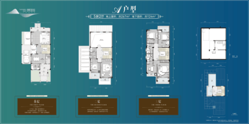 A户型:总建面391㎡(地上267㎡,地下124㎡),空间开阔,适配高端自住需求;