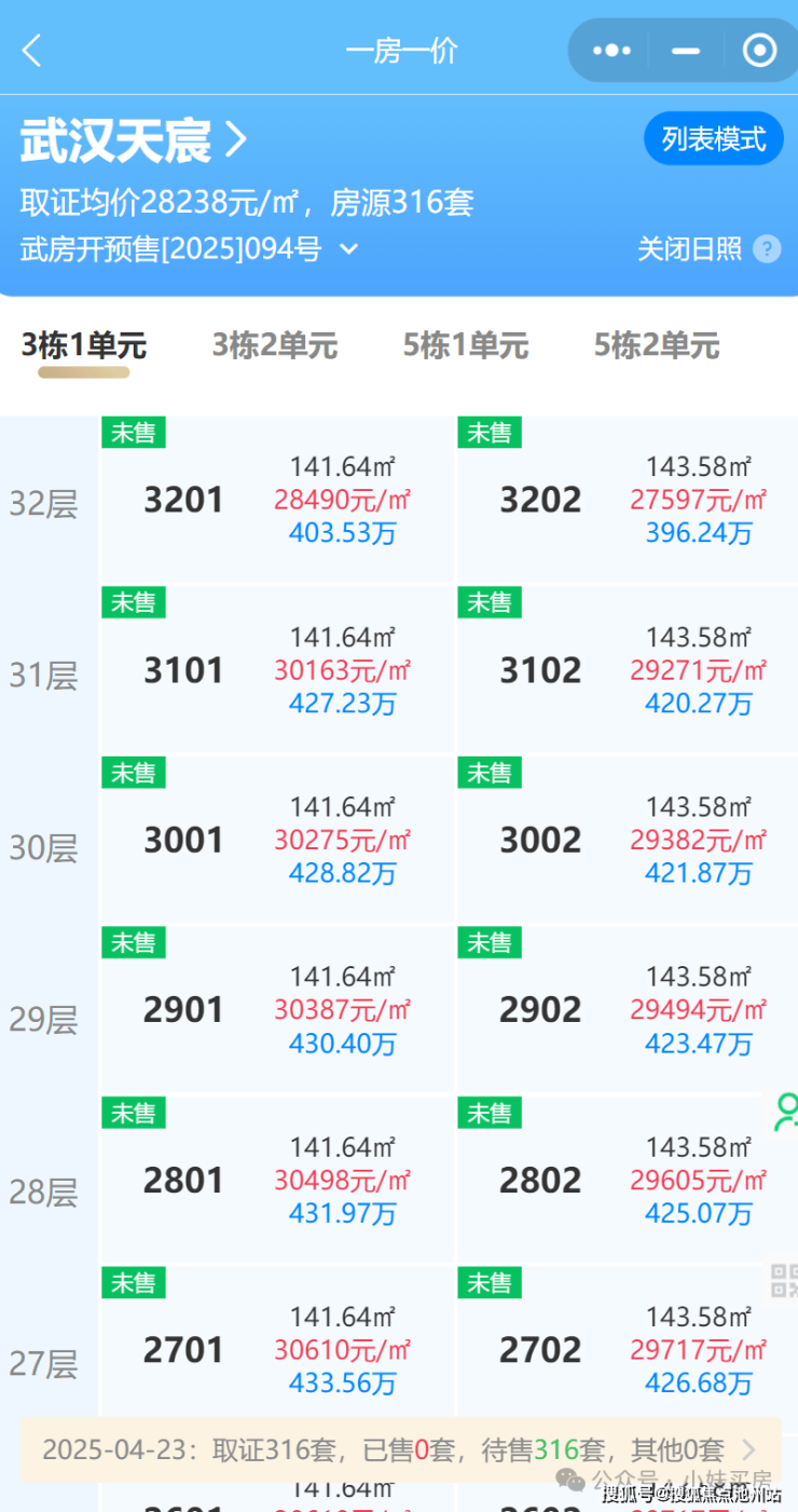 武汉天宸于4月25日首次开盘,首开推出3号楼、4号楼、5号楼西边单元共计244套房源。