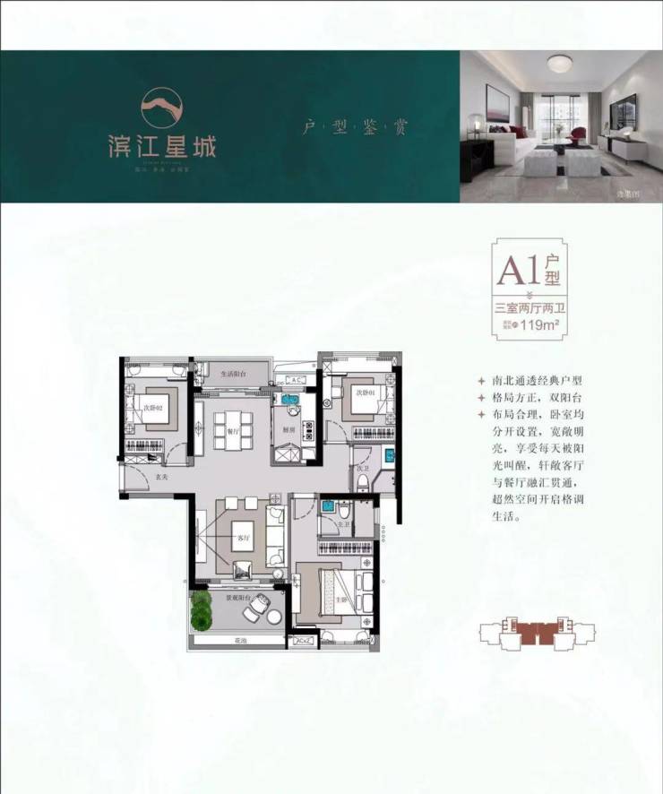 产品面积:110-129㎡三房两厅 板式大宅