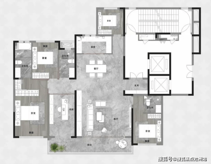 143平五房两厅三卫,5米开间、8米阳台,双套房!最实用的是5个卧室,在三胎政策下,显得更加实用。