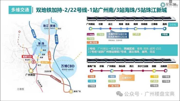 项目南区紧邻22号线地铁陈头岗站,,北区距离地铁口约800米左右,1站可达广州南,3站直达番禺广场,可换乘3号线、7号线、18号线等地铁,可快速去往各地。