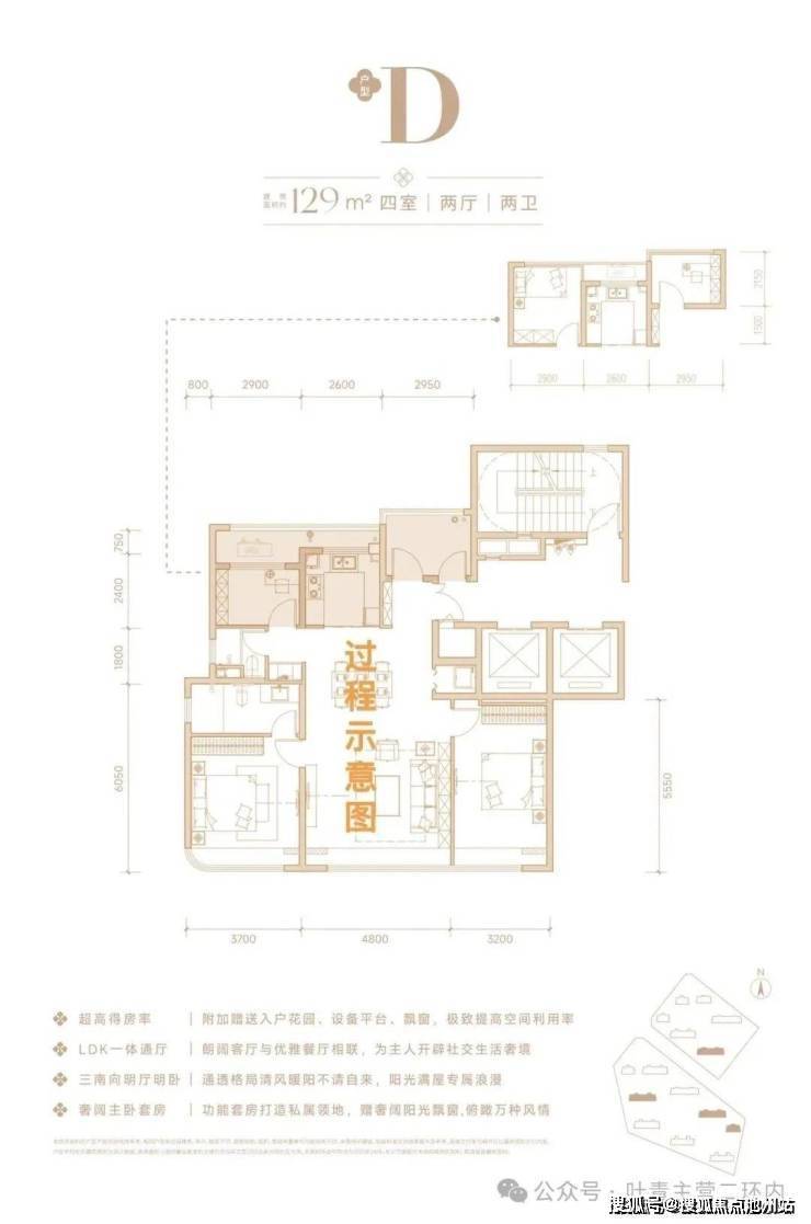 - 建面125㎡四叶草户型:南北通透,四开间朝南,主卧套房含独立衣帽间和卫浴,北向书房可改造为儿童房或家政间。