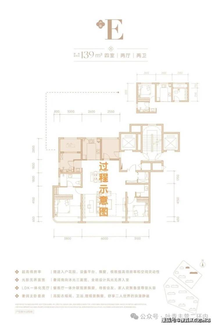 - 建面139㎡宽幕四房:南向面宽13.8米,LDK一体化设计+10.8㎡阳台,三代同堂居住互不干扰。