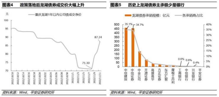 直接购买债券会怎么购买? 根据经济观察网报道,央行会通过再贷款鼓励金融机构购买民营地产债,再贷款金额等于民营地产债购买金额,如果违约,仍由金融机构承担。另外我们看到龙湖最新一期待发行的中票的承销商是五大行,而以往历史中龙湖债券中99%是由券商承销的,且本次承销属于包销,因此我们预计大行未来会成为直接购买民营地产债的主力军。