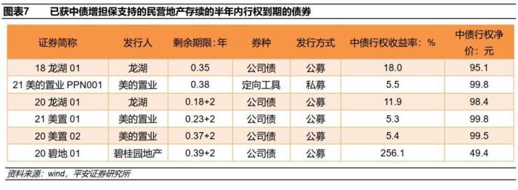 风险承受能力较高的机构可以关注已经获得中债增担保的民企的存量短债。18-19年共有121支民企债券获得支持,其中56%隐含评级是AA-,40%是AA,3.6%低于AA-,这说明标的债券资质整体较弱,但这些债券未有一单违约。18-19年共有67个民企获得支持,其中仅东方园林和亿利资源出现债券违约,而且这两家企业都在宽限期内完成了债券兑付。中债增属于政策性机构,一定程度上代表政府态度,且其掌握更多房企财务信息。虽然不排除其担保的主体会出现违约,但这些主体的安全性还是会超过其余房企。我们可以优先关注首批已经获得中债增担保的民企的半年内行权到期的存量短债,这部分债券的估值收益率最低有5.3%,最高达到256%。
