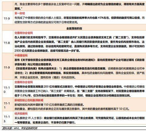 11月15日,平安固收发布《“第二支箭”扩容的细节与启示》一文,阐述“第二支箭”政策扩容的背景、具体手段等,接着对部分模糊的政策细节做出推演,最后是对地产债投资做出展望。