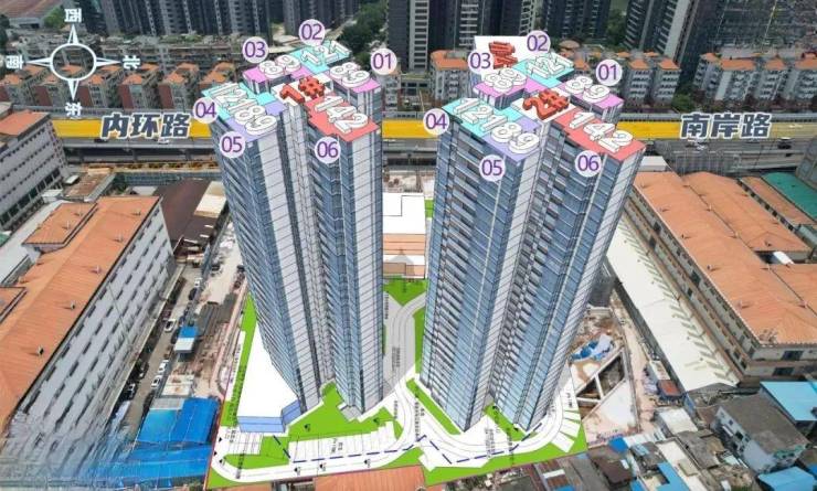 :项目西面邻近南岸路和内环路,虽然住宅楼远离路面,但部分高层可能会受到一定的噪音干扰。