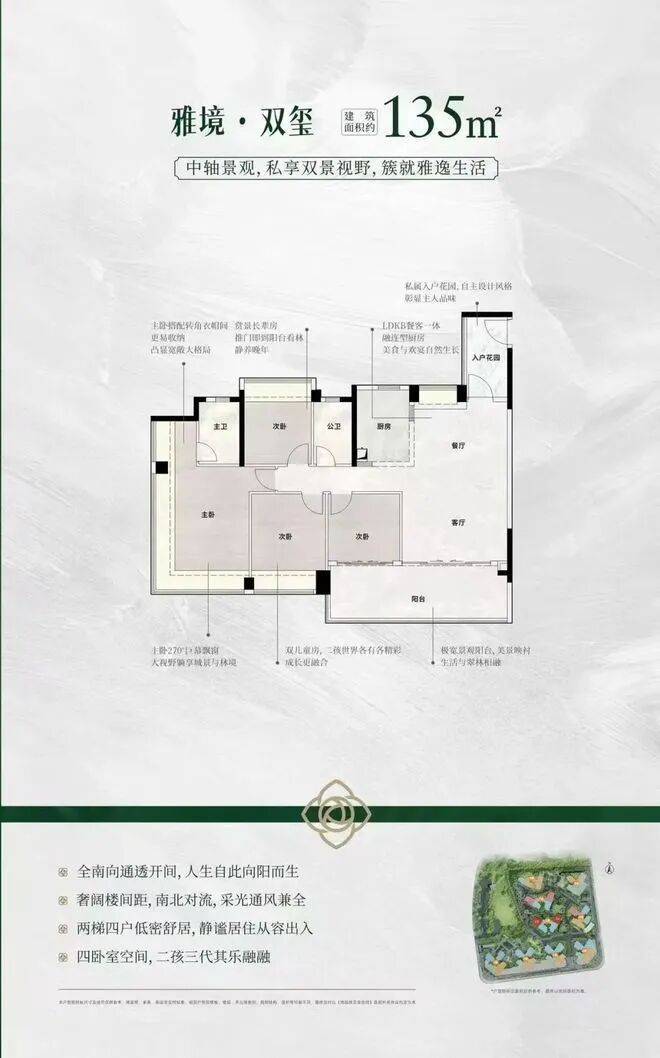 123-135㎡四房:4+1灵动空间,南北对流,主卧套房配备衣帽间,满足多孩家庭或品质改善需求。