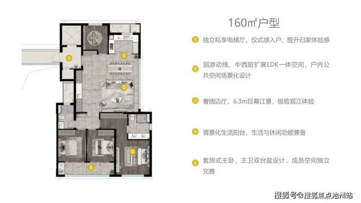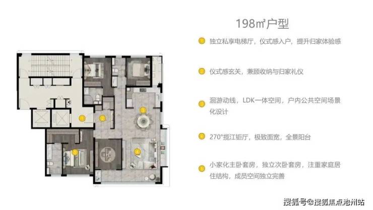 全系产品均为3-4房,面积段从105平米到198平米,户型格局方正、实用。