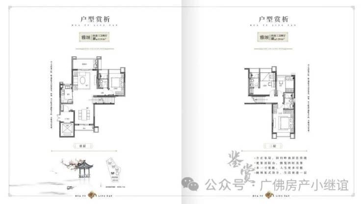 128平方四房三卫两厅 两个户型: